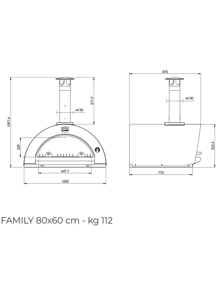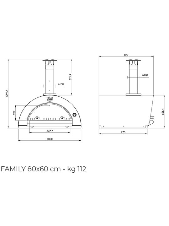 • Διαστάσεις θαλάμου μαγειρέματος: 80×60 ένας καυστήρας (4 πίτσες)
