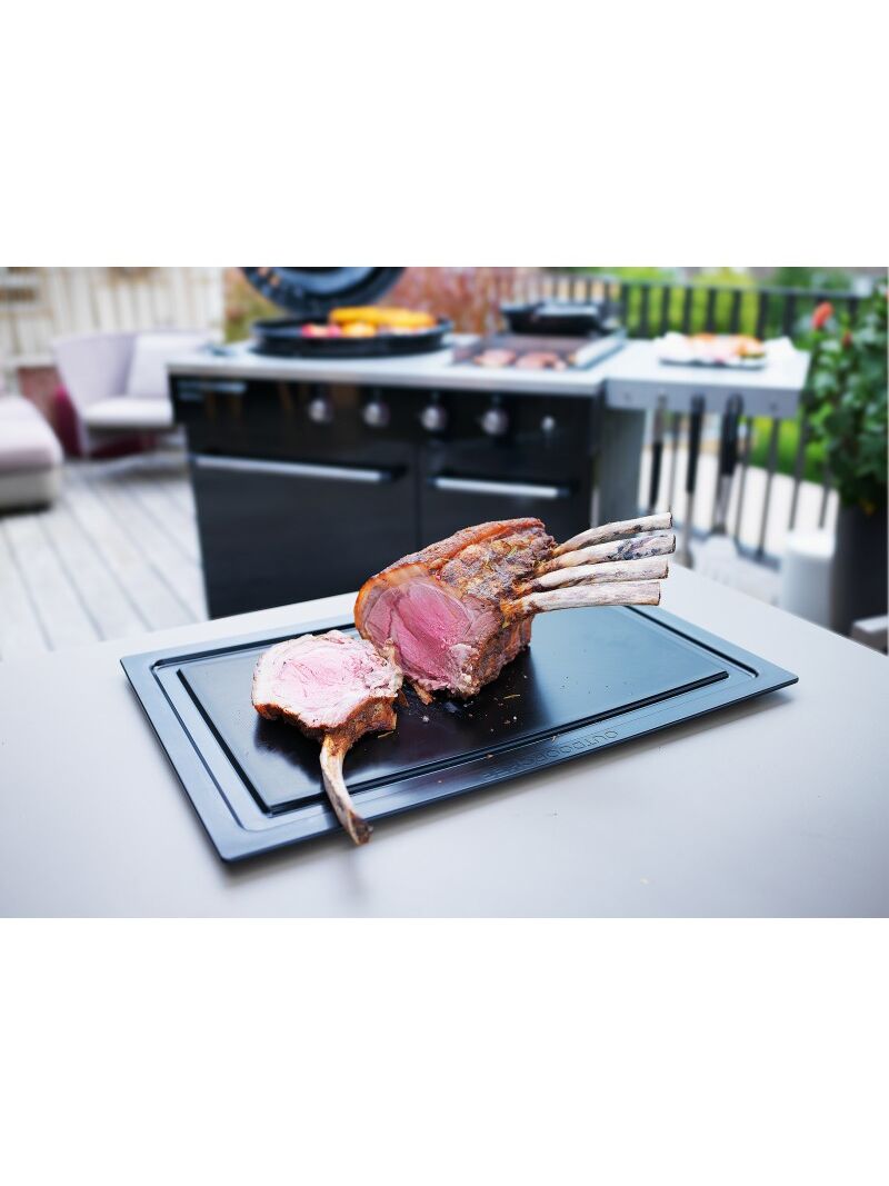 Η σανίδα κοπής, που περιλαμβάνεται στο LUGANO, διατίθεται επίσης από μόνη της. Η μεγάλη σανίδα κοπής είναι ιδανική για μεγάλα κομμάτια κρέατος. Είναι κατασκευασμένη από ανθεκτικά στα τρόφιμα υλικά, ανθεκτικά στην υπεριώδη ακτινοβολία. Κατασκευάζεται την Ελβετία.