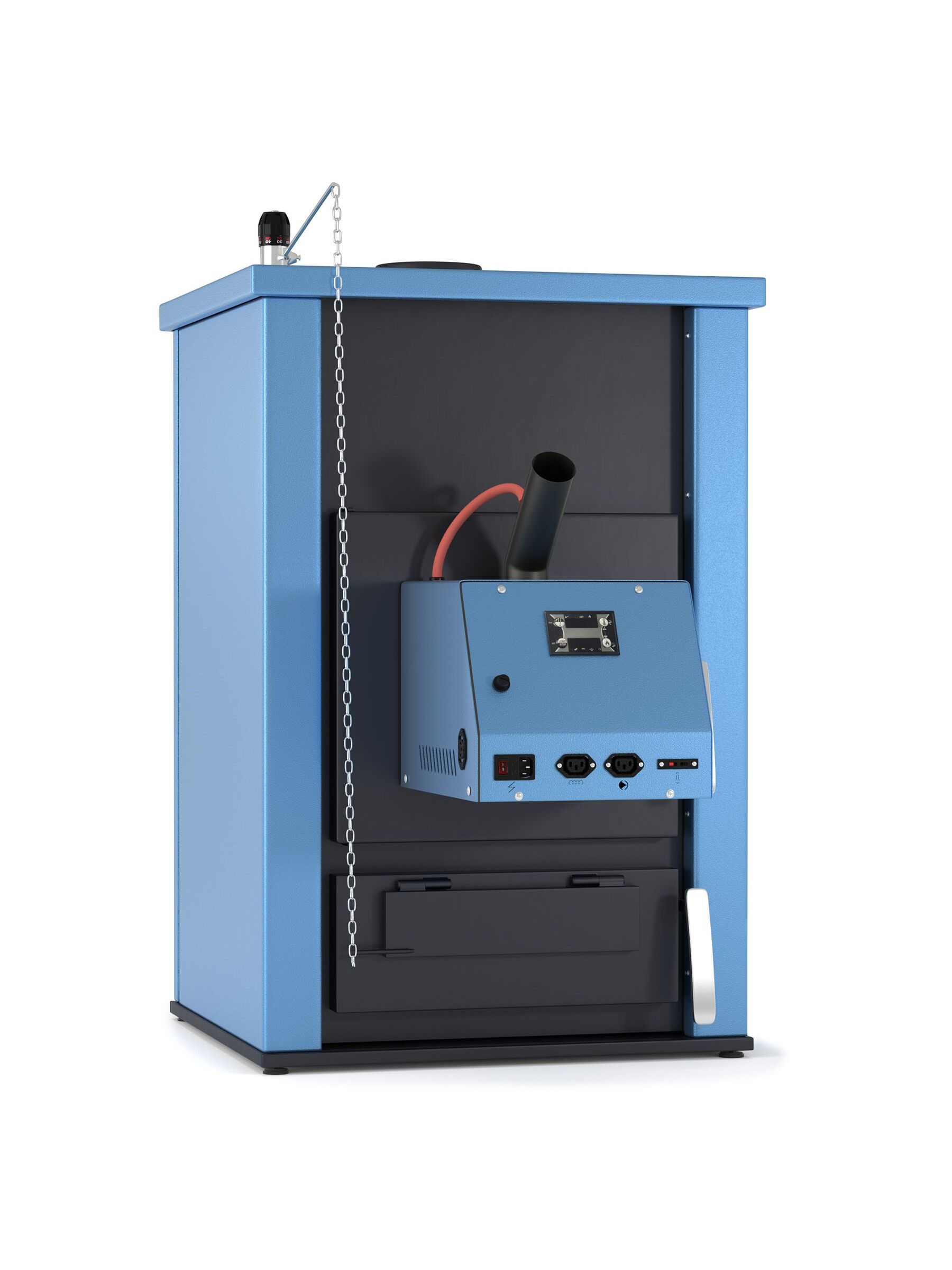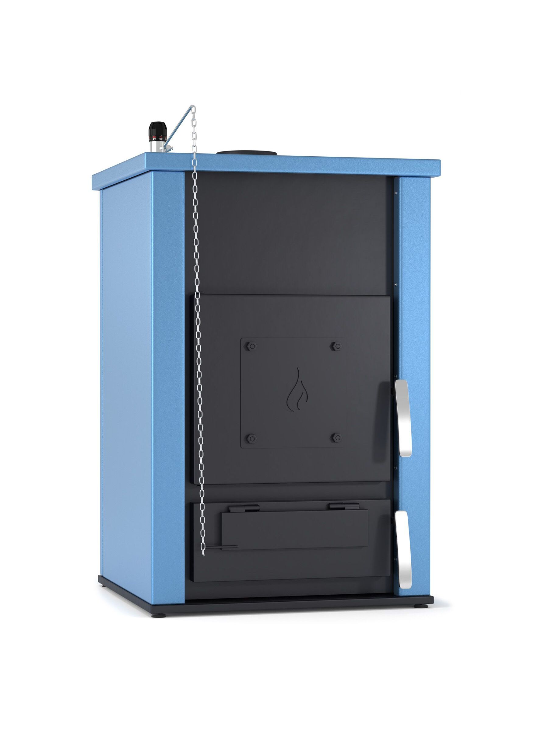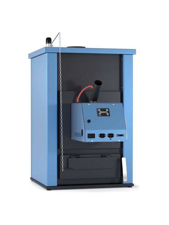 Mόνωση πετροβάμβακα 25mm περιμετρικά και κεραμοβάμβακας 25mm πάνω. Δυνατότητα να μετατραπεί σε λέβητα πέλλετ τοποθετώντας καυστήρα. Συνδέεται με υδροστατική βαλβίδα η ο ποια δεν παρέχεται. Έχει δοχείο (συρτάρι) στο κάτω μέρος της όπου συλλέγεται η τέφρα, κάνοντας έτσι πιο εύκολη την απομάκρυνσή της.
