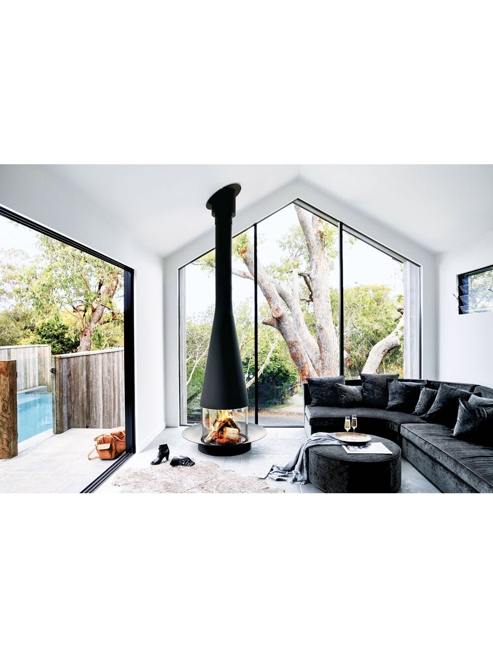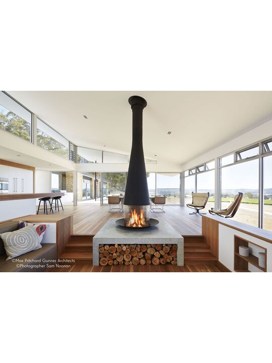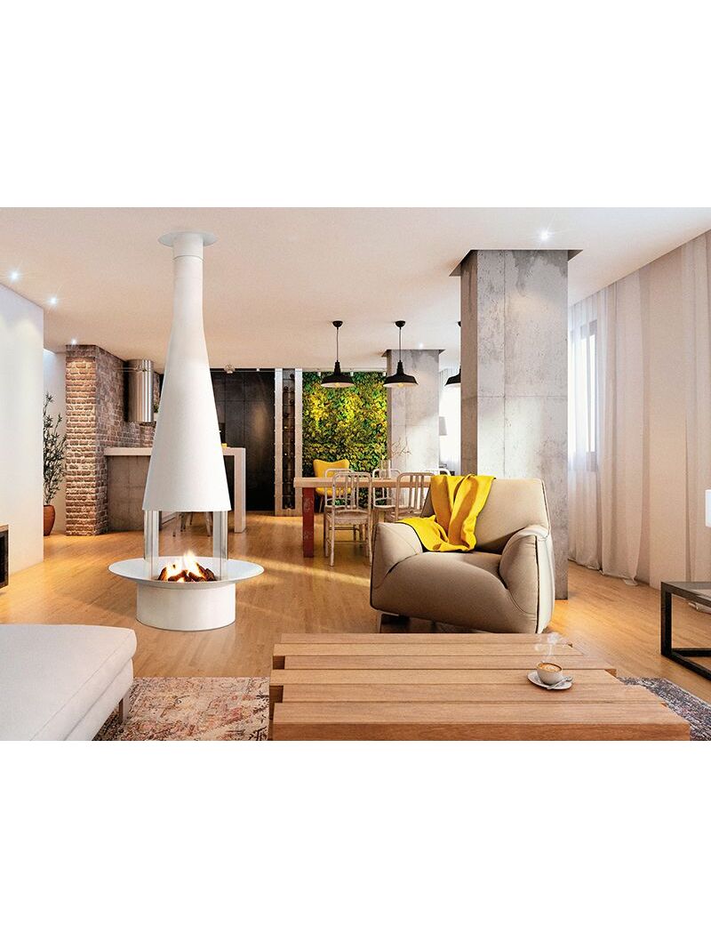 Αυτό το μοντέλο έχει τέσσερις καμπύλες γυάλινες πλάκες από τις οποίες δύο είναι σταθερές και δύο ανοιχτές διαφάνειες, που χρησιμεύουν ως πυροπροστασία. Το τζάκι μπορεί να τοποθετηθεί σε τρία διαφορετικά ύψη: ενσωματωμένο στο πάτωμα, τοποθετημένο πάνω από το πάτωμα, ή προσαρτημένο σε χάλυβα ή κατασκευασμένη βάση.