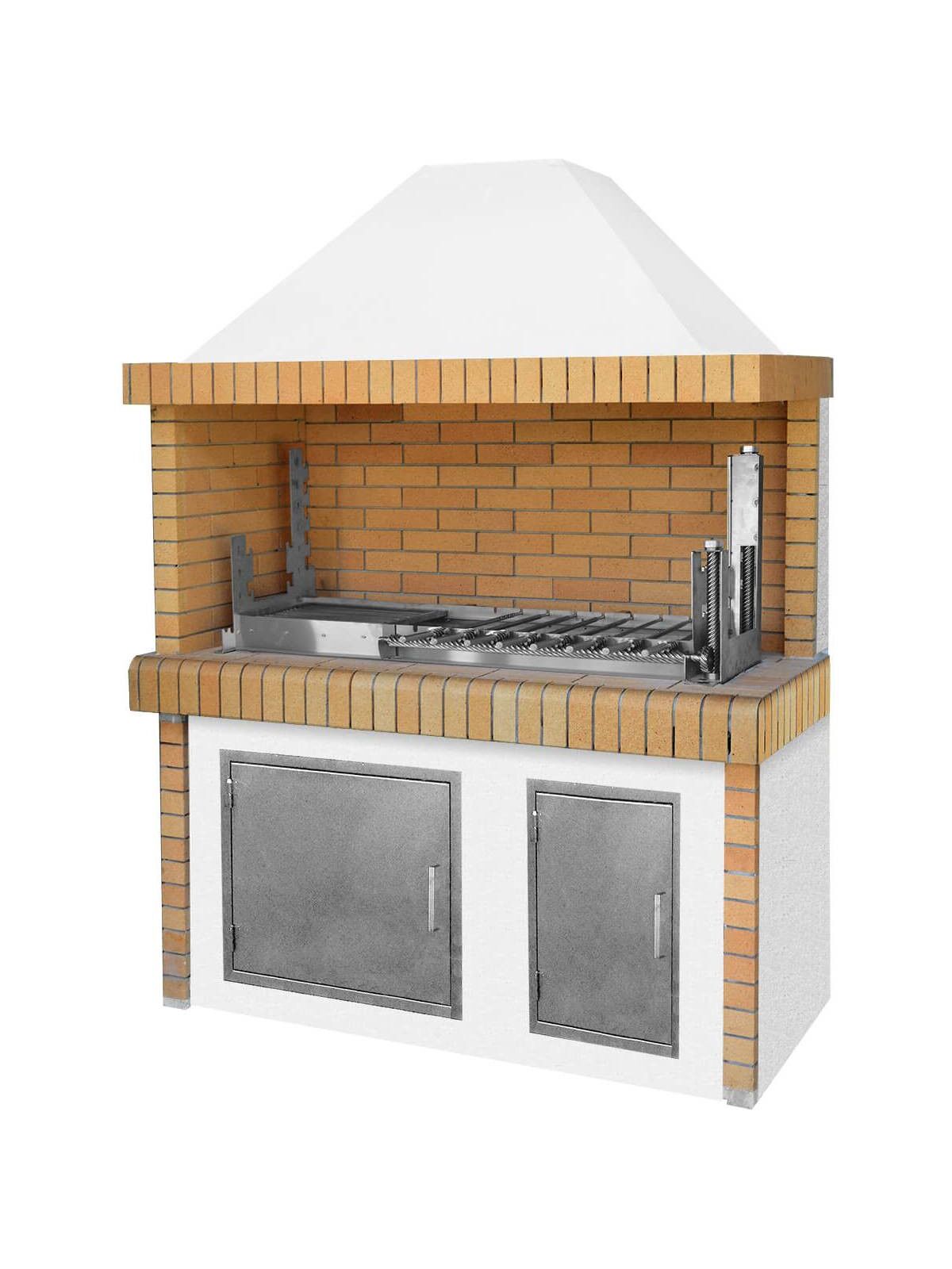 Η ψησταριά amber.q M αποτελεί ένα ενιαίο λειτουργικό σύστημα για πολλαπλό, ταυτόχρονο ψήσιμο. Είναι το μεσαίο μέγεθος ψησταριάς της σειράς amber.q και μπορεί να γίνει φορητή ή να ενσωματωθεί σε δική μας κτιστή κατασκευή ή κατασκευή της δική σας έμπνευσης. Μπορεί να ψήσει ένα αρνί και δύο κοντοσούβλια ή κοκορέτσια ταυτόχρονα ή μέχρι εννιά μικρές σούβλες (ατομικό κοντοσούβλι), προσαρμοζόμενη στο σετ των εξαρτημάτων που θα επιλέξετε. Μπορεί να ενσωματωθεί και σε επαγγελματικούς πάγκους κουζίνας ή σε εσωτερικές κουζίνες. Η κτιστή μας κατασκευή διατίθεται σε δύο χρώματα πυρότουβλων: κλασικό κίτρινο και σκούρο καφέ.