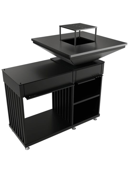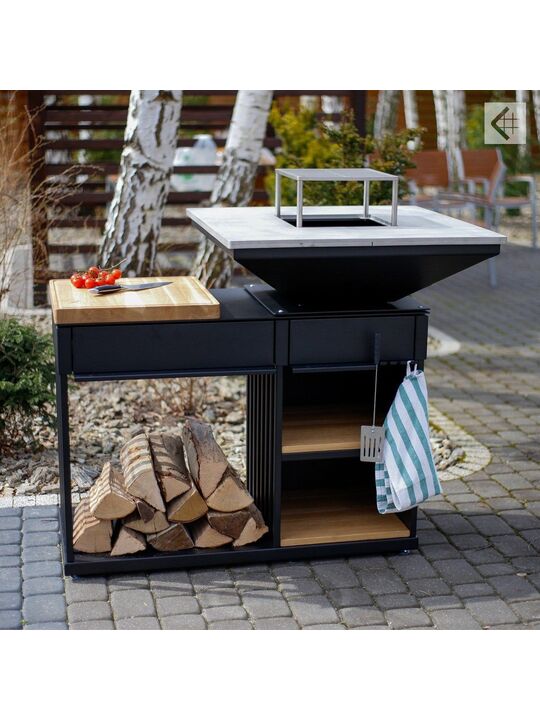 Το QUADRUM είναι εξαιρετικής ποιότητας μπάρμπεκιου με εστία ξύλου. Συνδυάζει τα πάντα σε ένα. Εξοπλισμένο με σχάρα από ανοξείδωτο ατσάλι, πλάκα κοπής / τραπεζάκι, εύχρηστα διαμερίσματα αποθήκευσης σκευών και μπαχαρικών με πρακτική / ευρύχωρη κοιλότητα ξύλου. Το QUADRUM fire pit bbq δεν είναι μόνο μια μοντέρνα σχάρα κήπου, αλλά και μια πλήρως εξοπλισμένη εξωτερική κουζίνα. Θα είναι επίσης τέλειο ως φωτιά στον κήπο με σχάρα - μια αποτελεσματική πηγή θερμότητας σε δροσερά βράδια, καθώς και έναν κομψό και φυσικό τρόπο φωτισμού του κήπου. Άνετη λειτουργία.
