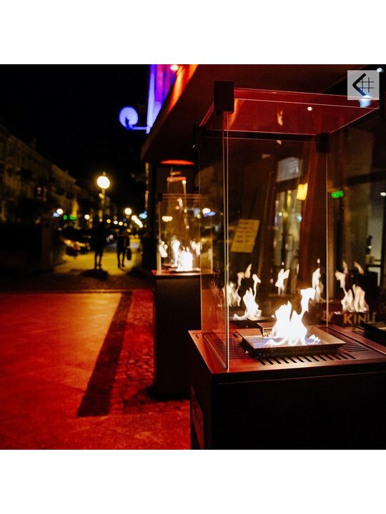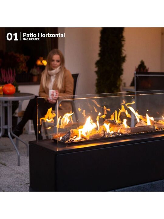 Το Patio δεν εκπέμπει ήχους ή μυρωδιές. Η δράση του δεν επηρεάζει την κυκλοφορία του αέρα, κάτι που είναι ιδιαίτερα σημαντικό για τους αλλεργικούς χρήστες. Είναι εύκολο να μετακινηθεί και να τοποθετηθεί σε επιλεγμένη περιοχή λόγω των εξοπλισμένων τροχών. Η συσκευή μπορεί να λειτουργεί συνεχώς με πλήρη ισχύ, συνεχώς έως και 30 ώρες. Η συσκευή είναι σχεδιασμένη για μπουκάλια 11 κιλών. Το αίθριο δεν απαιτεί καθαρισμό τζαμιών, αφού η φωτιά δεν τα καπνίζει. Η εκτόξευση του είναι πολύ εύκολη και διαισθητική μέσω ενός κουμπιού που βρίσκεται στον κάτω θάλαμο του κλιβάνου.