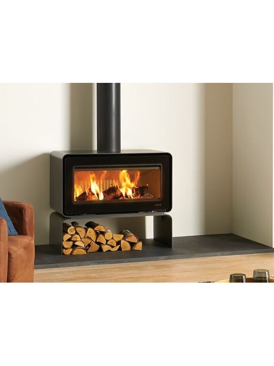 Ένας εντελώς μοναδικός συνδυασμός σόμπας και πλίνθου δημιουργεί νέες ευκαιρίες και τρόπο έκφρασης για μοντέρνο εσωτερικό σχεδιασμό. Δημιουργεί μια συναρπαστική αλληλεπίδραση μεταξύ των υλικών, των σχημάτων και των χρωμάτων. Η στιβαρή βάση από χάλυβα επαναλαμβάνει το στρογγυλό σχήμα της σόμπας και μπορεί να χρησιμοποιηθεί για αποθήκευση.