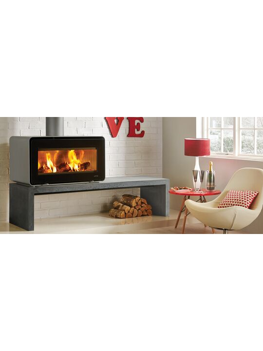 Ένας εντελώς μοναδικός συνδυασμός σόμπας και πλίνθου δημιουργεί νέες ευκαιρίες και τρόπο έκφρασης για μοντέρνο εσωτερικό σχεδιασμό. Δημιουργεί μια συναρπαστική αλληλεπίδραση μεταξύ των υλικών, των σχημάτων και των χρωμάτων. Η στιβαρή βάση από χάλυβα επαναλαμβάνει το στρογγυλό σχήμα της σόμπας και μπορεί να χρησιμοποιηθεί για αποθήκευση.