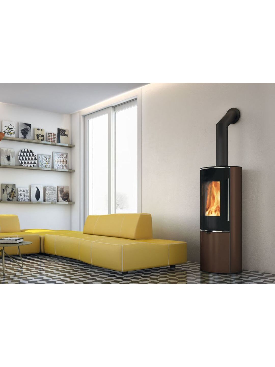 Σόμπα ξύλου. Άπλετο κάθετο τζάμι που εκθειάζει τη φυσική πορεία της φλόγας.