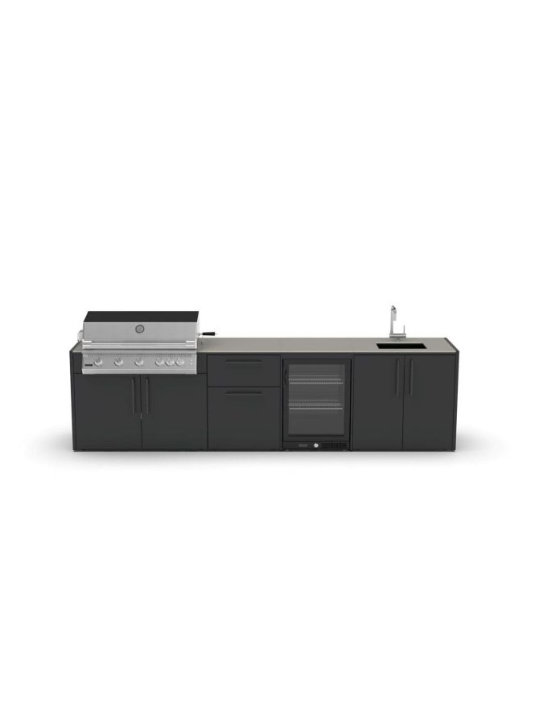 Κατασκευασμένο με υλικά υψηλής ποιότητας που αντέχουν, ο σκελετός είναι κατασκευασμένος από ανθεκτικό γαλβανισμένο ατσάλι με διπλή ηλεκτροστατική βαφή, πιστοποιημένη από την Qualicoat. Η κάθε μονάδα κουζίνας μπορεί να σχεδιαστεί ώστε να ταιριάζει άψογα με όλη τη γκάμα των μαγειρικών συσκευών, για μια ολοκληρωμένη εξωτερική κουζίνα οπως: ψησταριές αερίου και κάρβουνου, φούρνο πίτσας, νεροχύτη και αποθηκευτικούς χώρους.