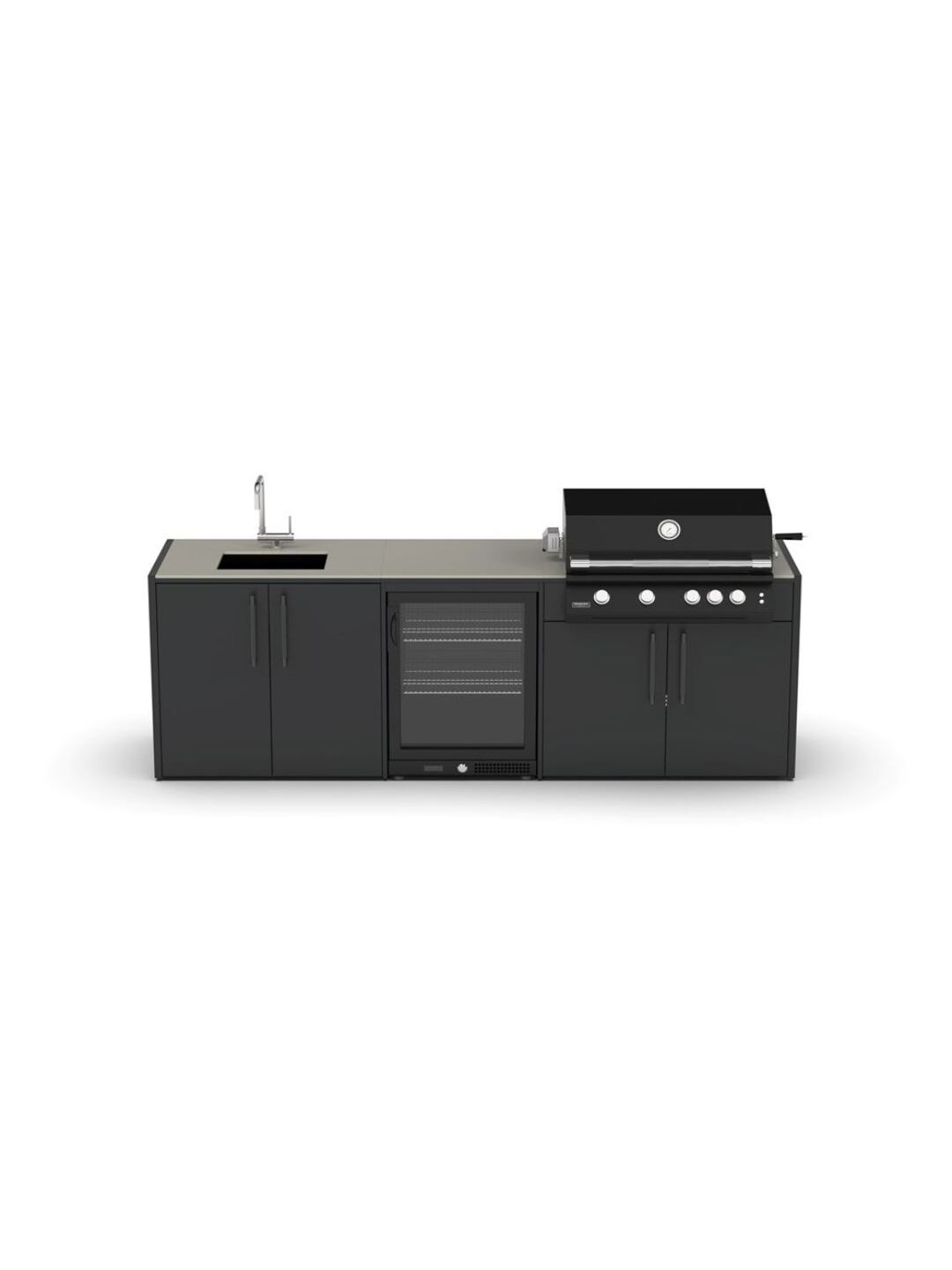 Κατασκευασμένο με υλικά υψηλής ποιότητας που αντέχουν, ο σκελετός είναι κατασκευασμένος από ανθεκτικό γαλβανισμένο ατσάλι με διπλή ηλεκτροστατική βαφή, πιστοποιημένη από την Qualicoat. Η κάθε μονάδα κουζίνας μπορεί να σχεδιαστεί ώστε να ταιριάζει άψογα με όλη τη γκάμα των μαγειρικών συσκευών, για μια ολοκληρωμένη εξωτερική κουζίνα οπως: ψησταριές αερίου και κάρβουνου, φούρνο πίτσας, νεροχύτη και αποθηκευτικούς χώρους.