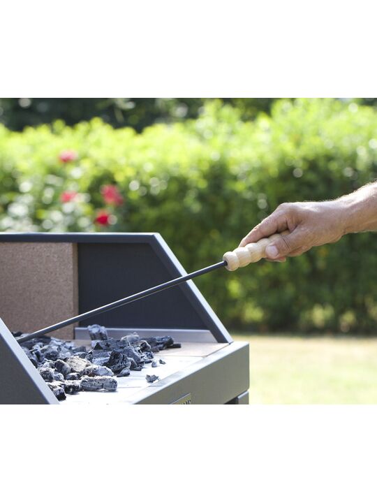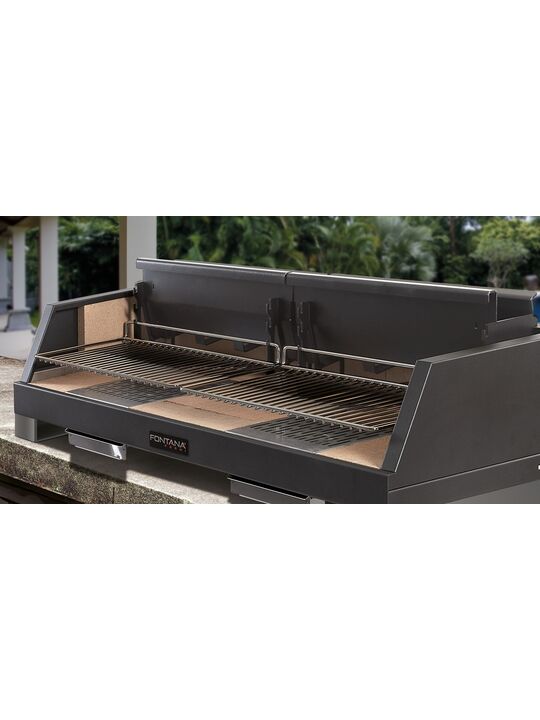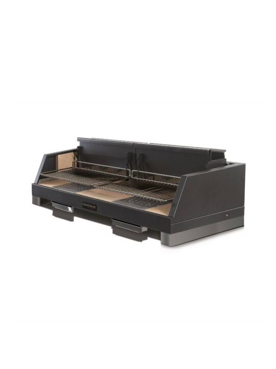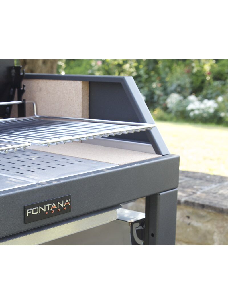Ανοιχτή σχάρα με υπερ-ενισχυμένη θερμάστρα και επένδυση από πυρίμαχη πέτρα. Επιφάνεια μαγειρέματος: 80 x 40 cm και 110 x 40 cm. Η δομή είναι κατασκευασμένη από ατσάλι και ανοξείδωτο ατσάλι με δύο βολικά πτυσσόμενα ράφια. Η θερμάστρα με επένδυση από πυρίμαχη πέτρα σας επιτρέπει να παρατείνετε τη θερμιδική αξία των κάρβουνων για μεγαλύτερο χρονικό διάστημα και, επομένως, να εξοικονομήσετε την ποσότητα των ξύλων που πρέπει να χρησιμοποιηθούν. Η μισή σχάρα σάς επιτρέπει να ετοιμάσετε ένα μπάρμπεκιου ακόμη και για περιορισμένο αριθμό ατόμων χωρίς να χρειάζεται να καταφύγετε στο να λερώσετε ολόκληρη την ψησταριά. Επιπλέον, η λύση αυτή δίνει τη δυνατότητα να μαγειρεύετε ταυτόχρονα πιάτα που έχουν διαφορετικές θερμοκρασίες και χρόνους μαγειρέματος, επιτρέποντάς σας να σερβίρετε αυτά τα φαγητά ταυτόχρονα. Η διπλή πλευρική επιφάνεια στήριξης έχει σχεδιαστεί για να διπλώνεται μετά τη χρήση- επομένως, λιγότερος όγκος όταν πρέπει να την τακτοποιήσουμε.