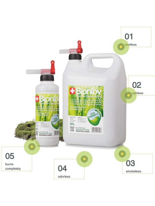 Βιοαιθανόλη κορυφαίας ποιότητας, ειδικά σχεδιασμένη για χρήση σε βιολογικά τζάκια. Είναι πιστοποιημένη από το Εθνικό Ινστιτούτο Δημόσιας Υγείας. Το Bionlov® είναι μια ανανεώσιμη πηγή ενέργειας.   Bionlov® σημαίνει χιλιάδες ικανοποιημένοι πελάτες σε όλο τον κόσμο. Bionlov® σημαίνει προσοχή στην οικολογία, την ποιότητα και περαιτέρω καινοτομίες προϊόντων κάθε μέρα.