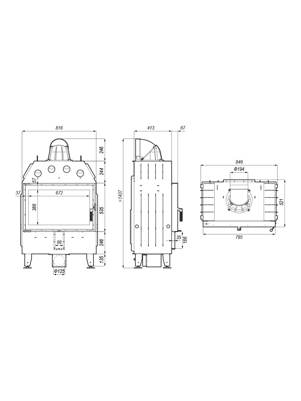 Έξοδος καπνού ø 200mm - Παροχή φρέσκου αέρα ø 125mm