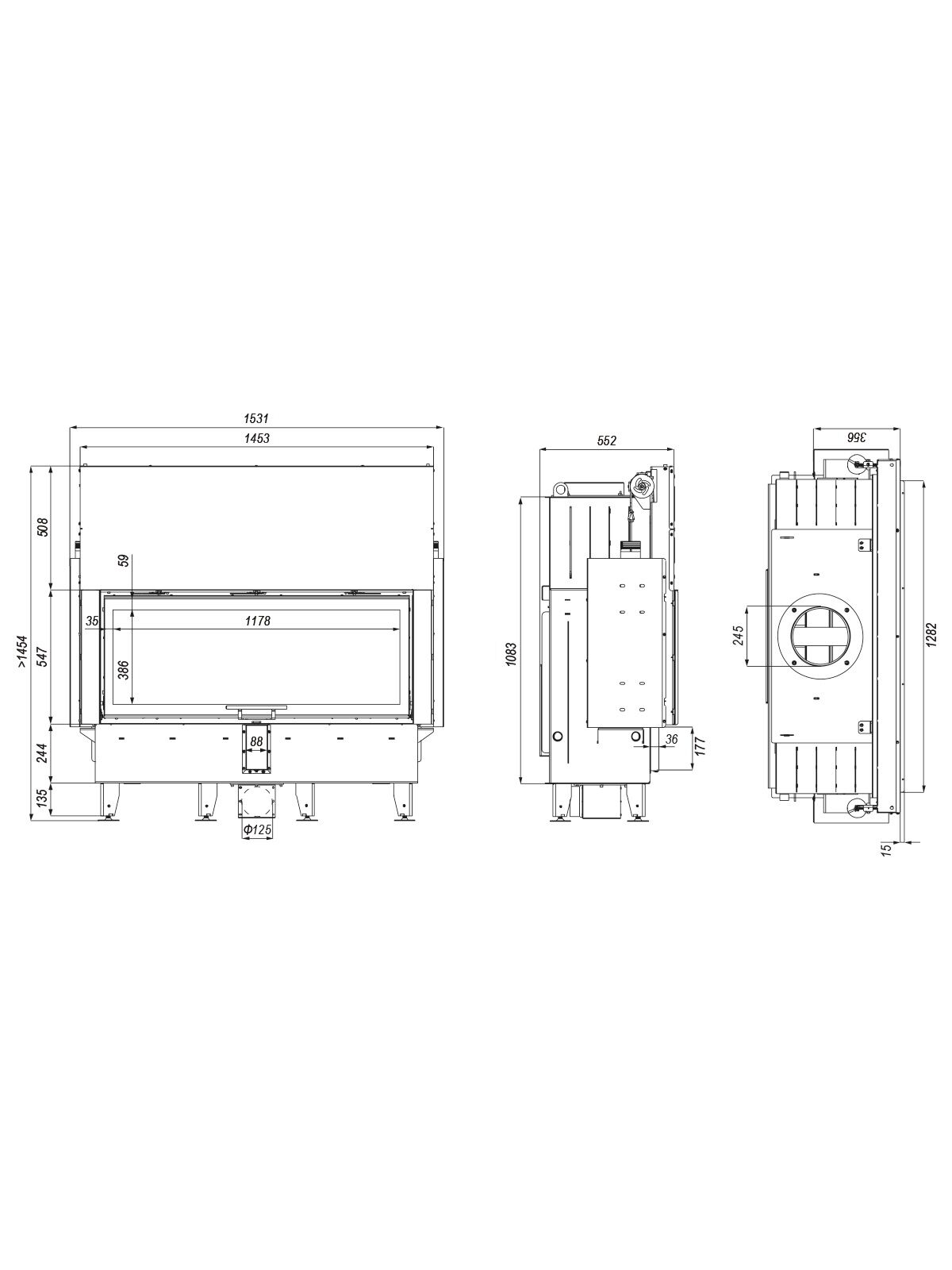 Έξοδος καπνού ø 200mm - Παροχή φρέσκου αέρα ø 125mm