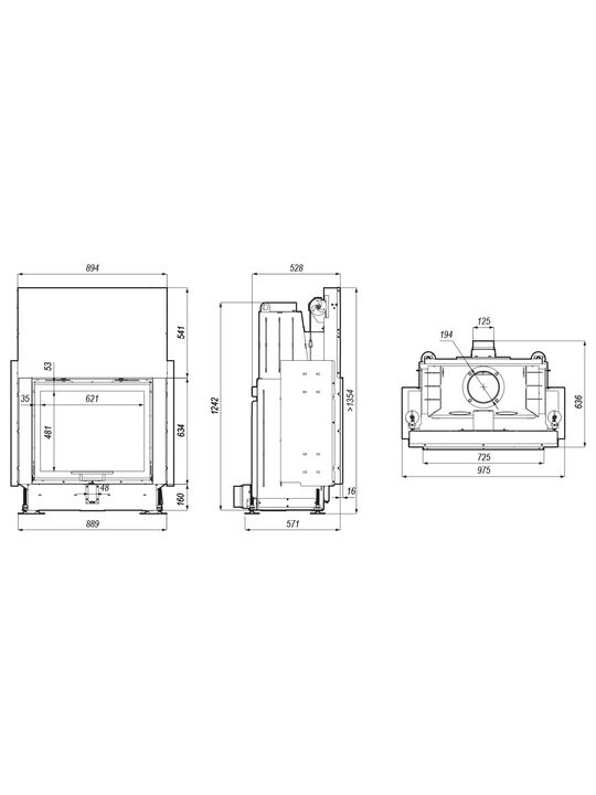 Έξοδος καπνού ø 200mm - Παροχή φρέσκου αέρα ø 125mm