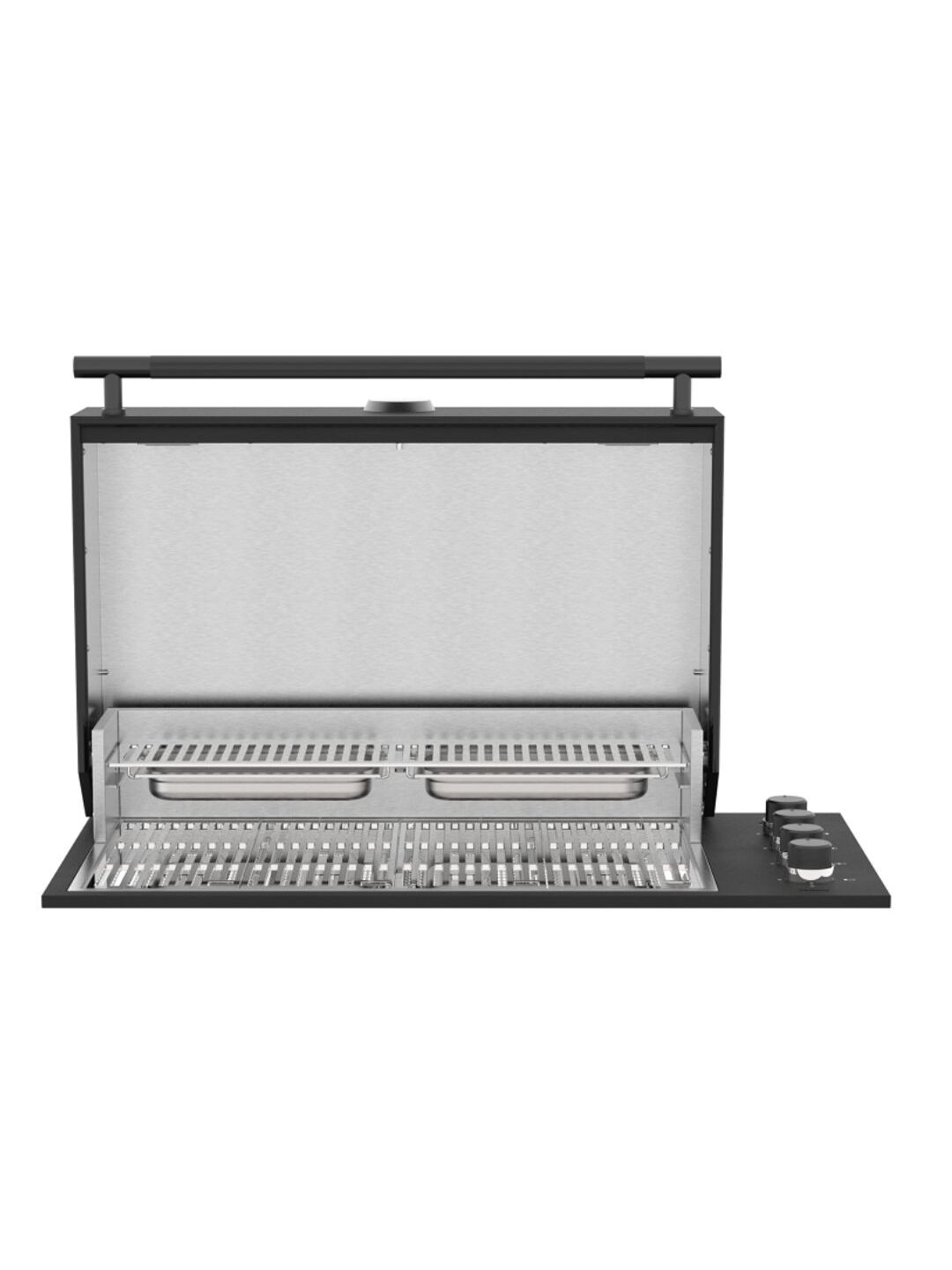 Το κάτω μέρος του κάδου είναι ένα μεγάλο συρτάρι όπου τα λίπη αφαιρούνται εύκολα. Το συρτάρι βρίσκεται στο εσωτερικό της εκάστοτε εξωτερικής κουζίνας προσφέροντας την πρακτικότητα αλλά παράλληλα διατηρόντας την minimal αισθητική. Οι ανοξείδωτες σχάρες καθιστούν εύκολο τον καθαρισμό στην επιφάνεια ψησίματος.