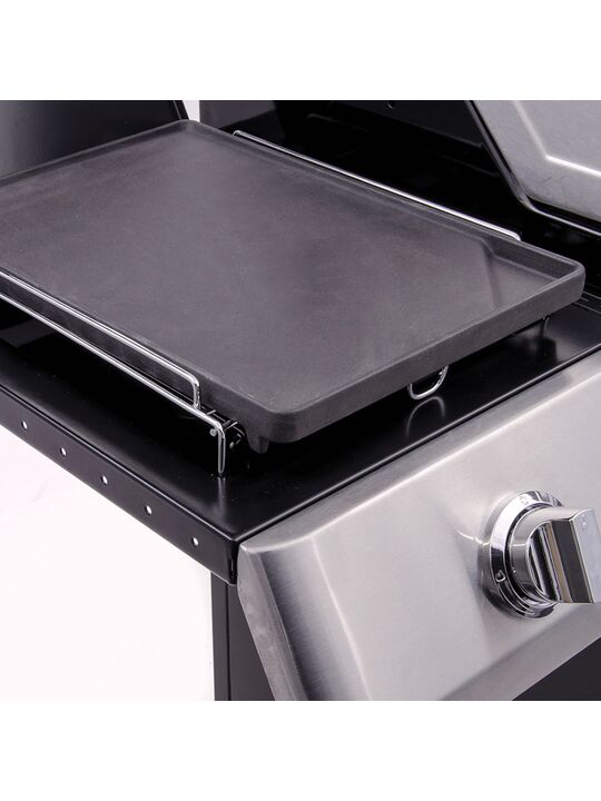 "Θέλετε περισσότερα από τη σχάρα σας; Με αυτό το set μαντεμένιας πλάκας, μπορείτε να μετατρέψετε τον πλευρικό καυστήρα σας σε μία βολική επιφάνεια ψησίματος. Φρέσκες ομελέτες, ζεστές τηγανίτες ή τραγανά μπέικον - οι δυνατότητες είναι ατελείωτες! Η μαντεμένια πλάκα ταιριάζει στις περισσότερες ψησταριές αερίου Char-Broil."