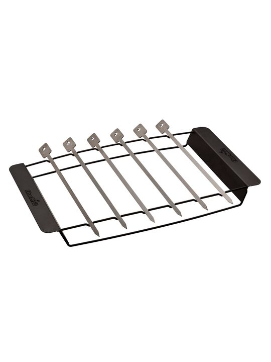 Τα σουβλάκια κάθονται για να μην κολλούν στην επιφάνεια ψησίματος και για πιο ομοιόμορφο ψήσιμο.Η ειδική σχεδίαση δεν επιτρέπει στα σουβλάκια να γλιστρούν